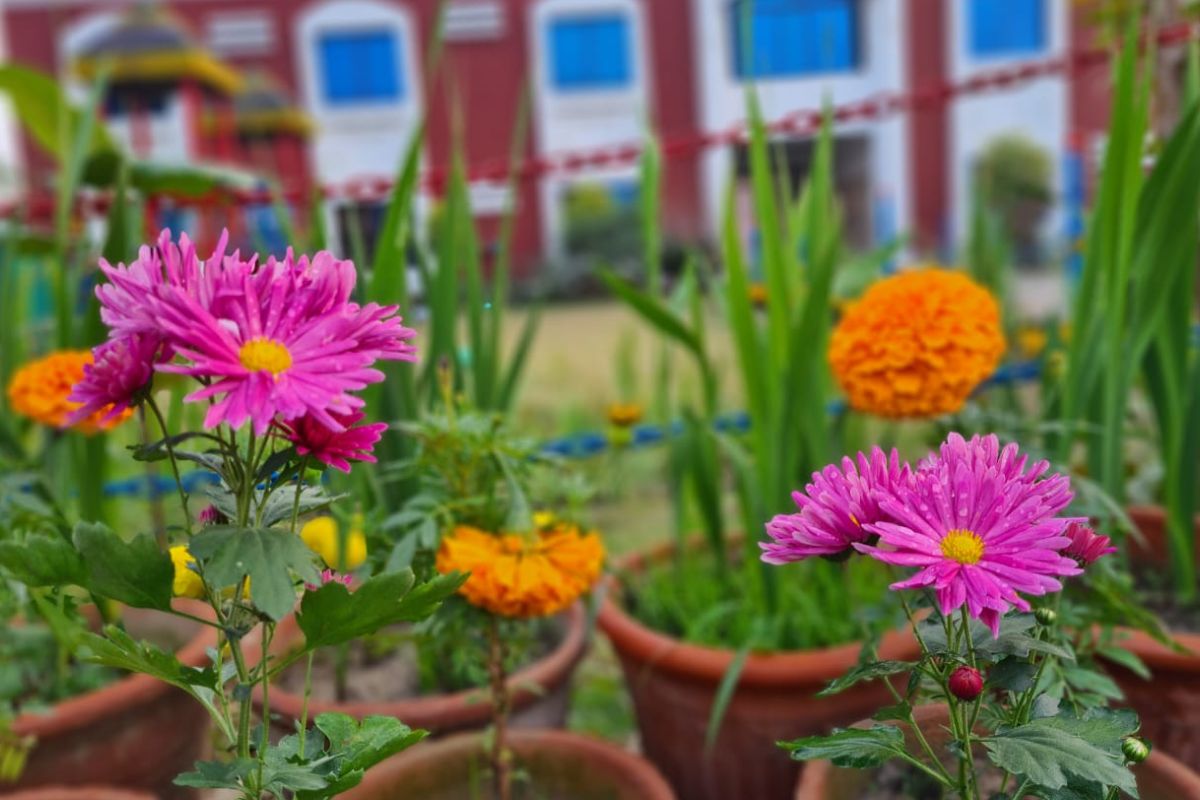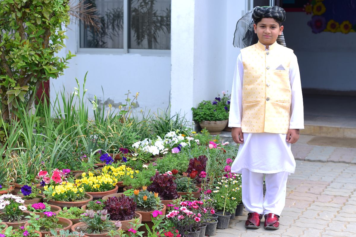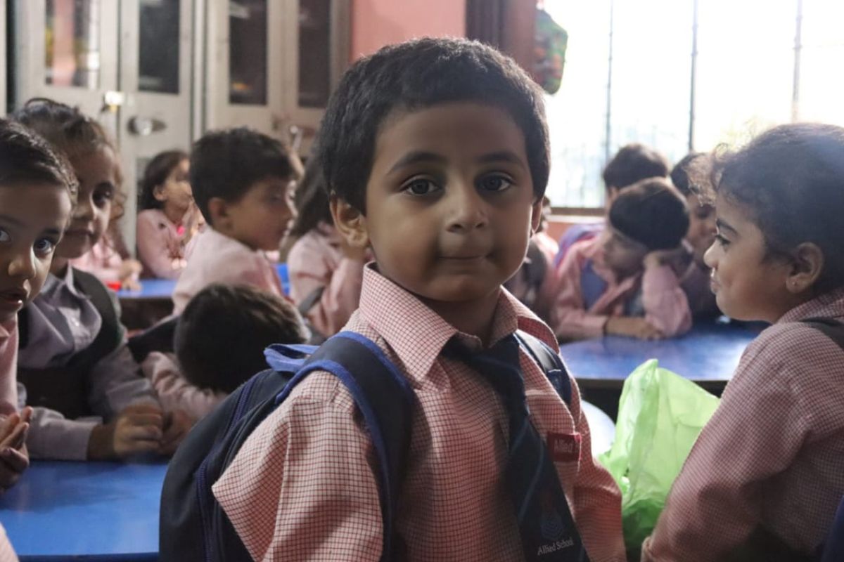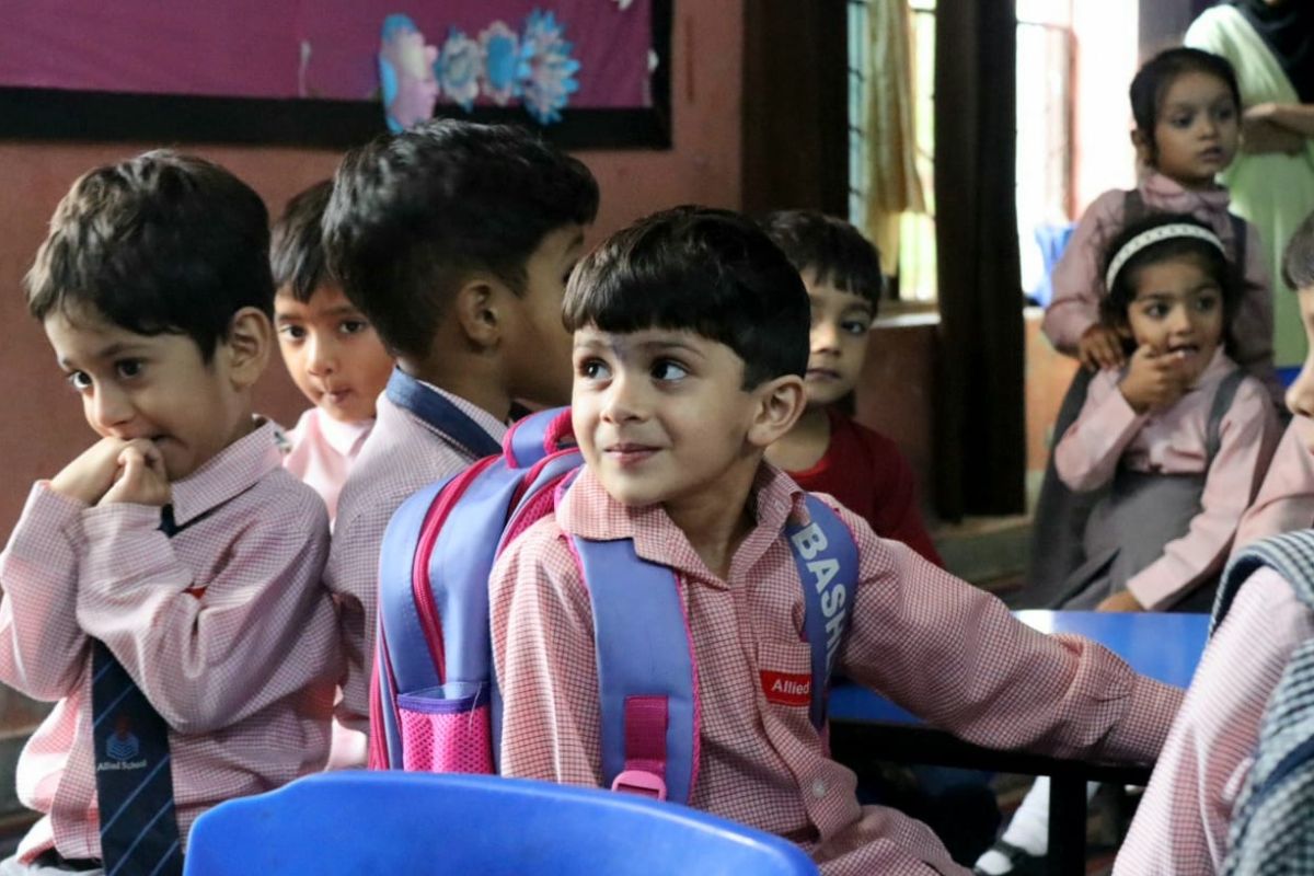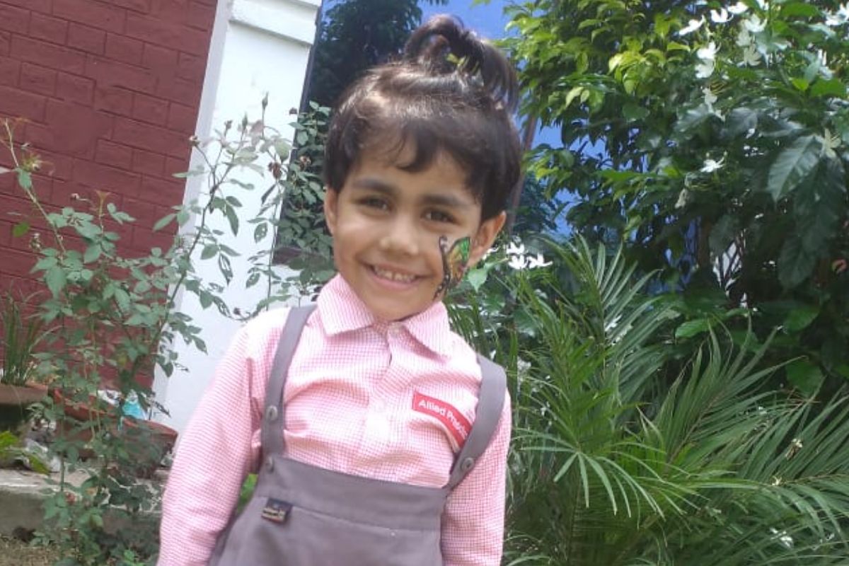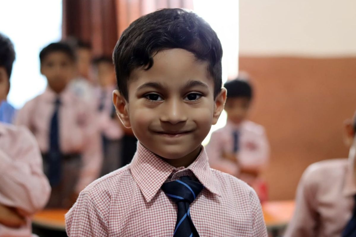 Smiling faces . Play group students enjoying in school lush green lawn. This is the age having fun and fun.