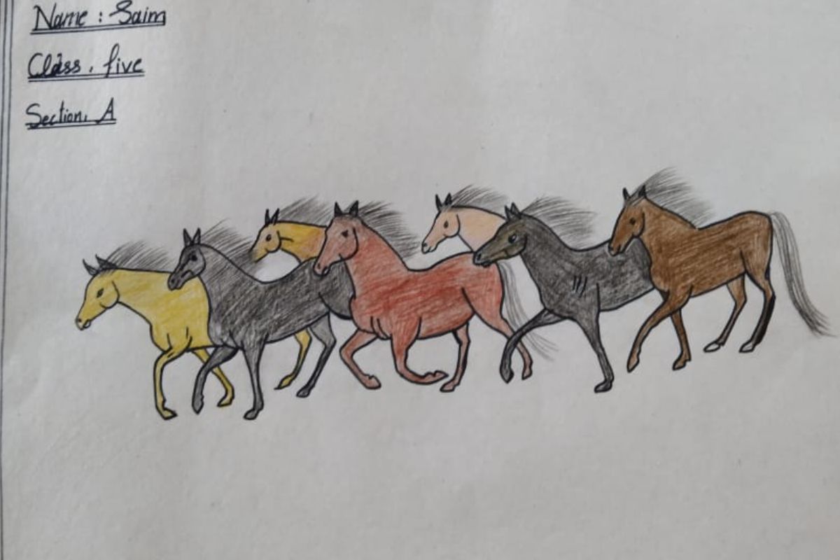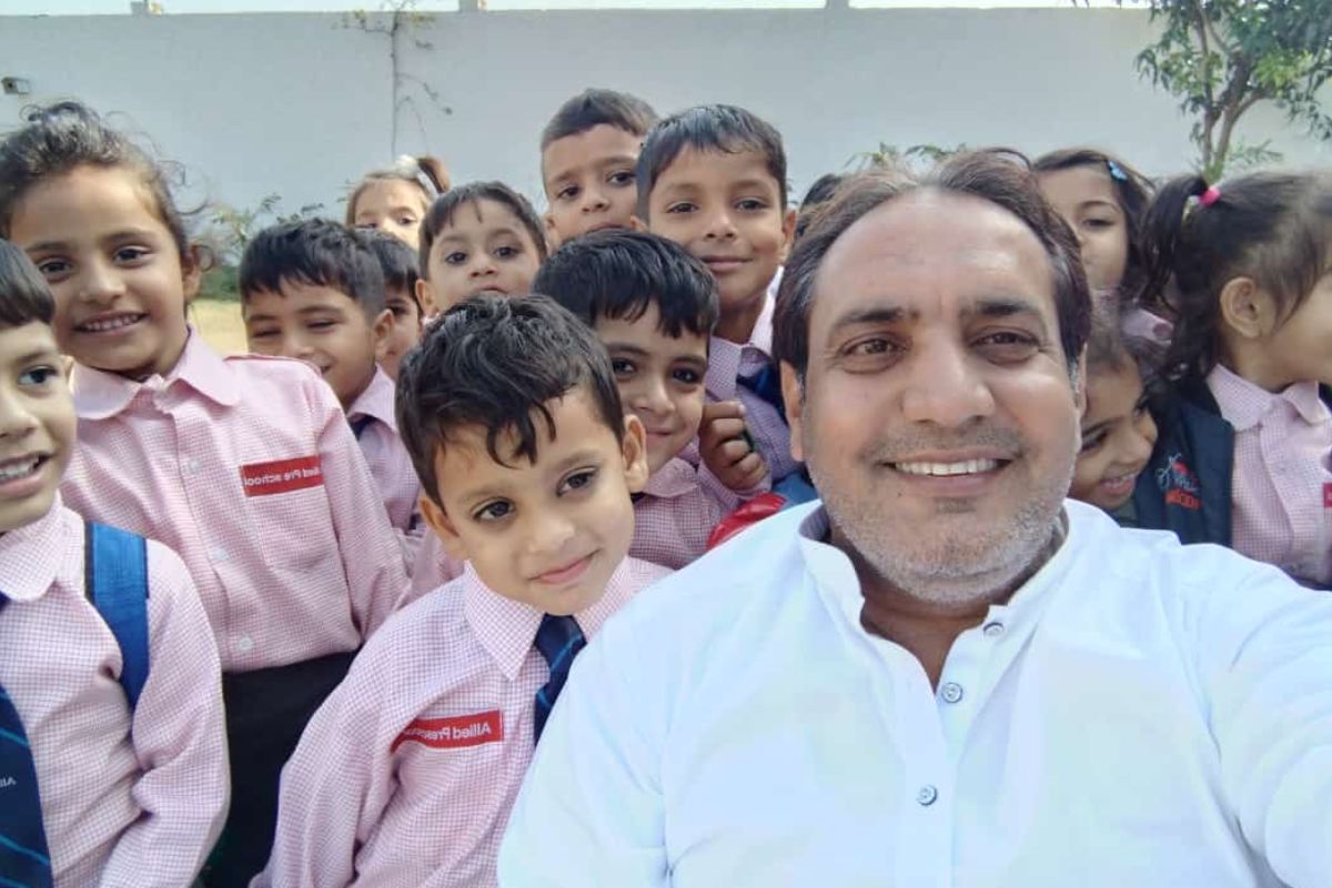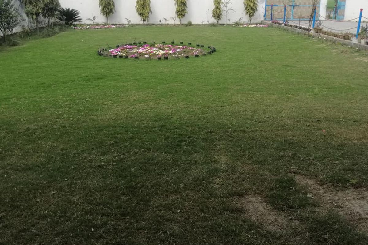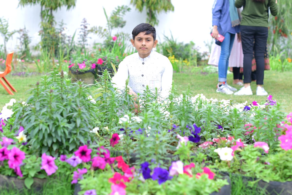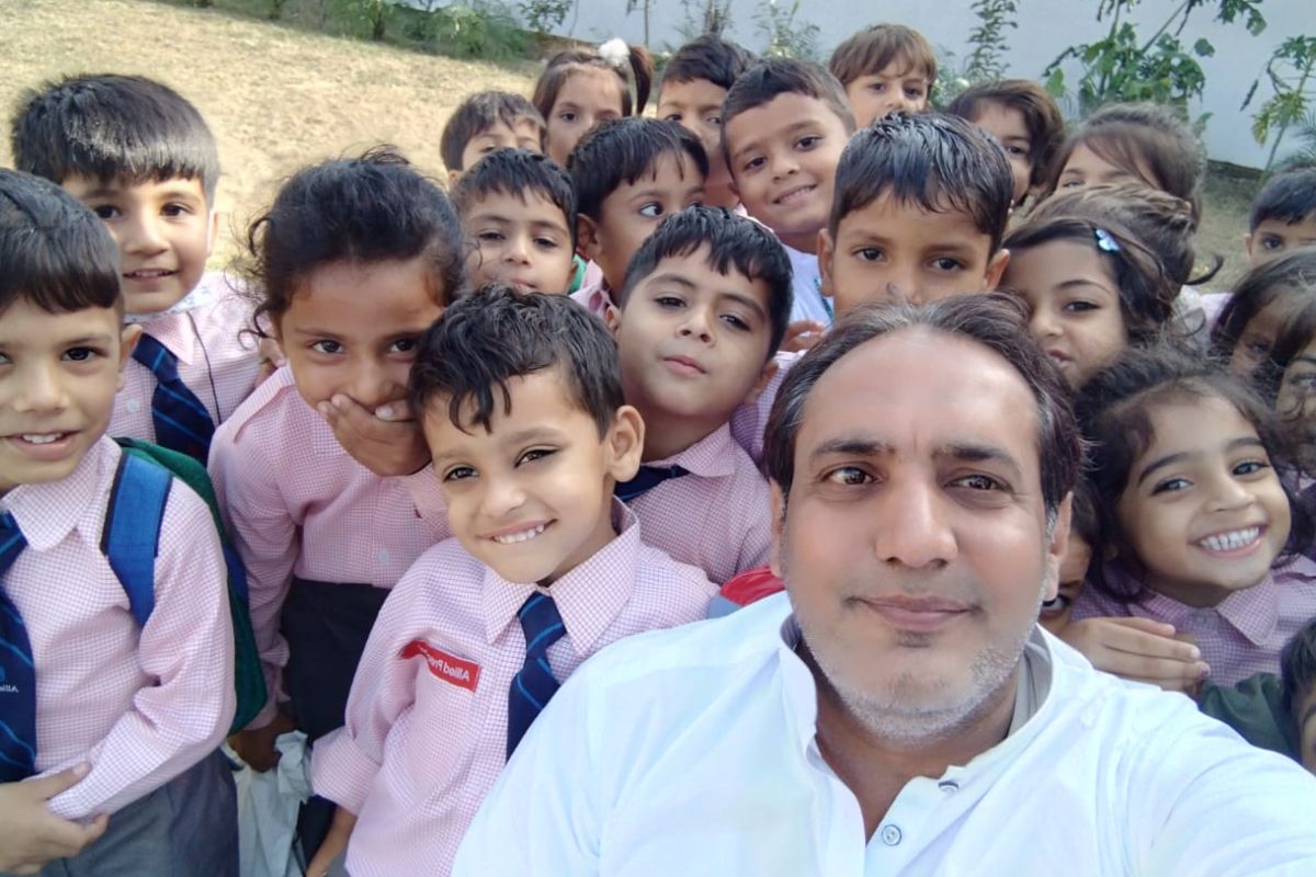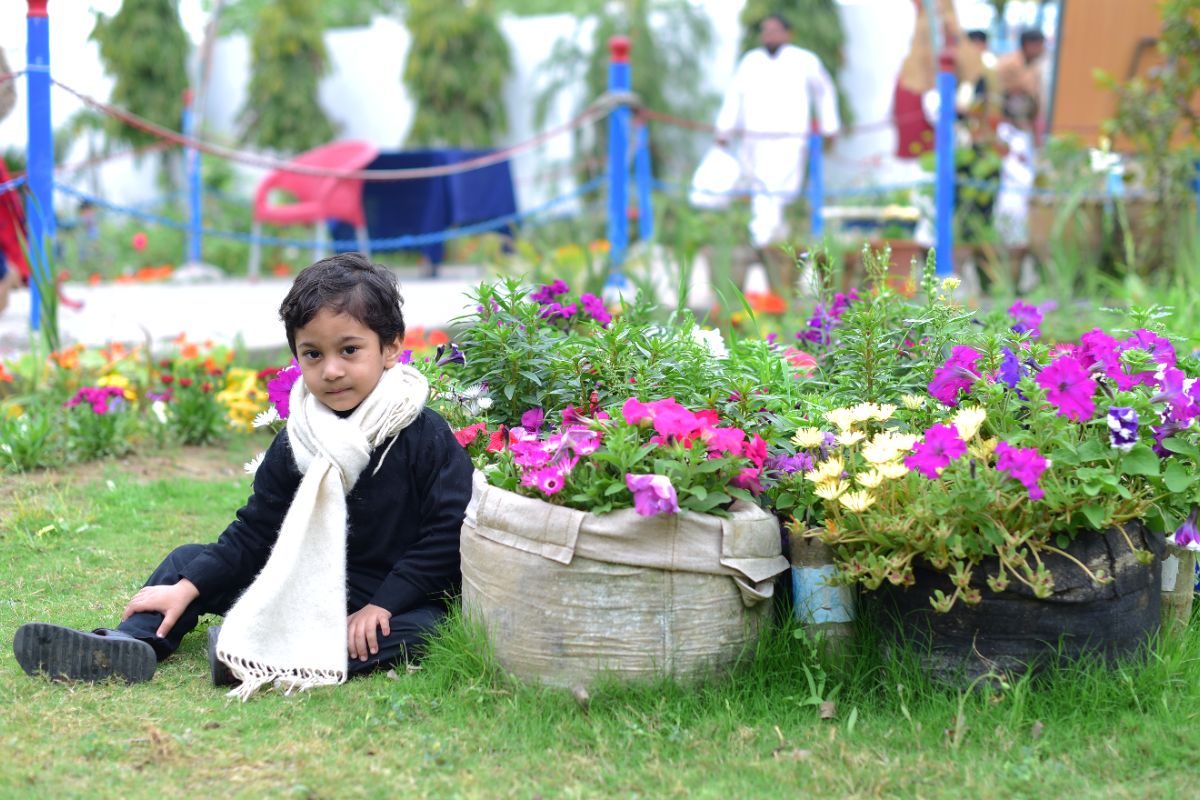 Smiling faces . Play group students enjoying in school lush green lawn. This is the age having fun and fun.